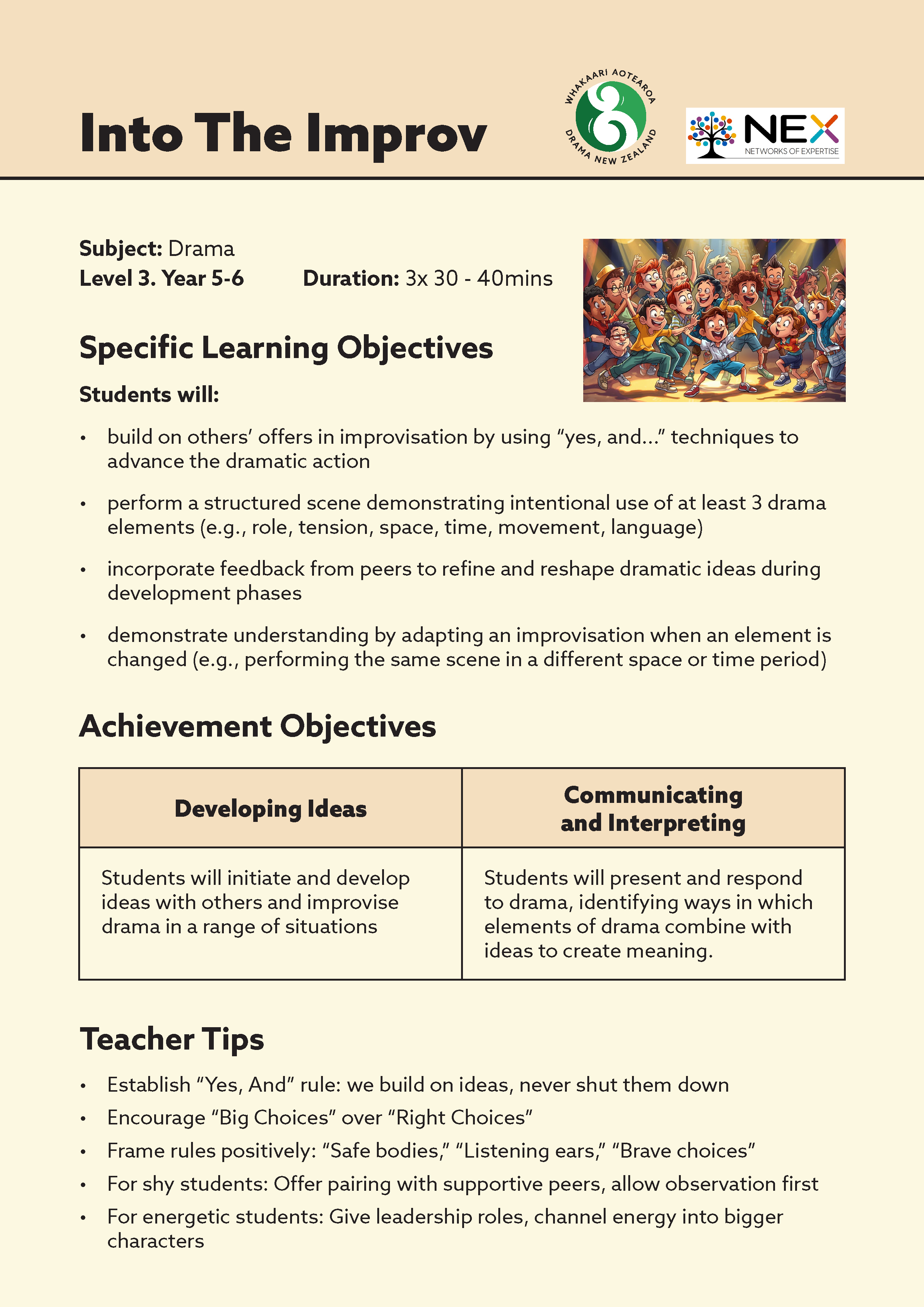 This fun filled introduction to the art of improvisation builds capacities and skills through a range of lively engaging improv games. Students will work collaboratively to build scenes and refine their work at pace.