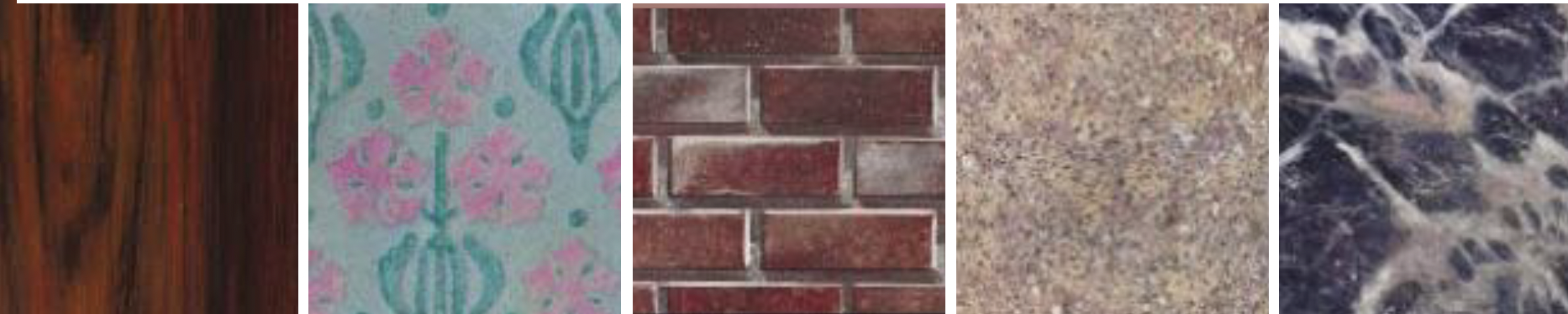 A guidebook for creating scenic finishes, including techniques for painting marble, brick walls, wood grain, and rust effects.